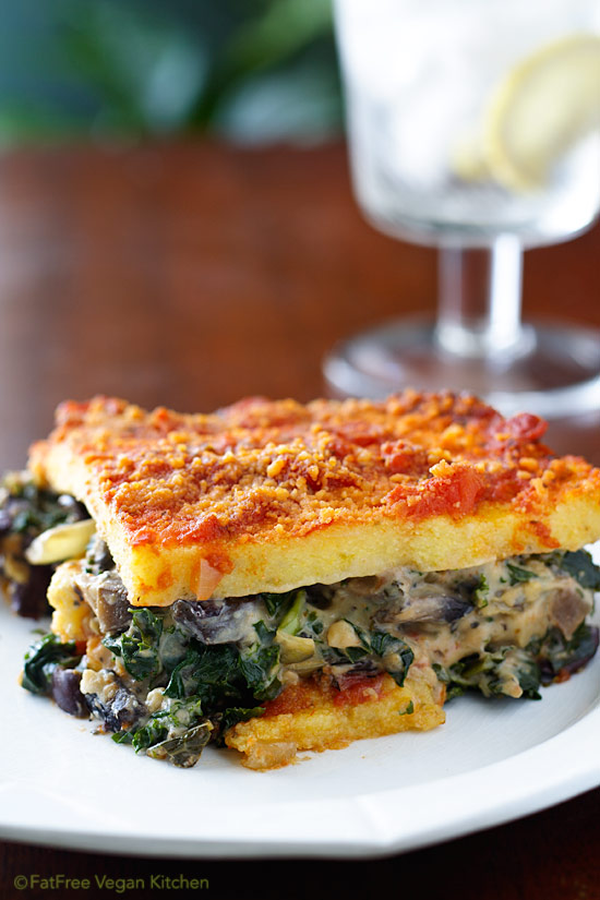 • If you are looking for a more plant-based lasagna, and one with no noodles, Polenta Lasagna with Portabellas and Kale from Fat Free Vegan is delicious.